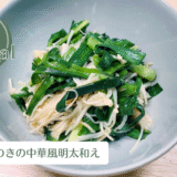 【えのきとニラの中華風明太和え】ニラはたっぷり1束でボリューム満点