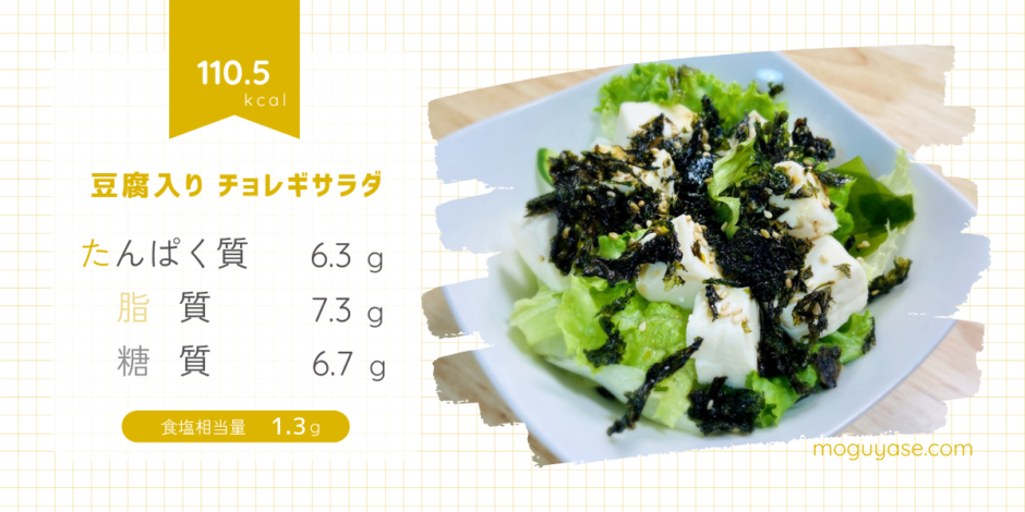基本のチョレギサラダに豆腐を加えた、満足感たっぷりの一品。