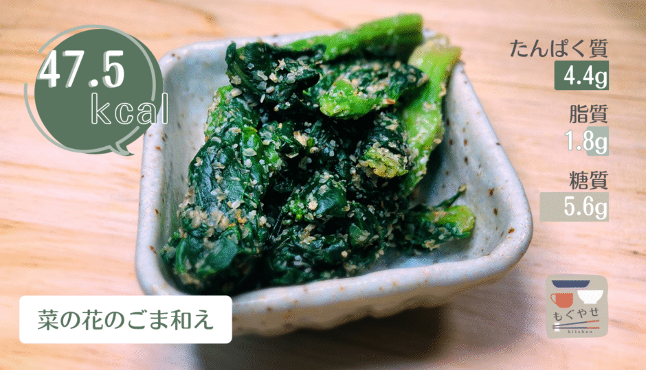 ほんのり苦味のある菜の花に、香ばしいすりごまを合わせた一品。