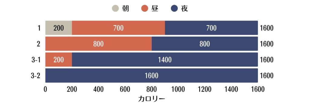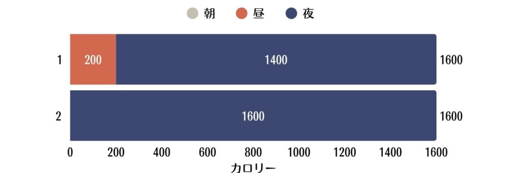 朝:200kcal 昼・夜:700kcalの組み合わせです。