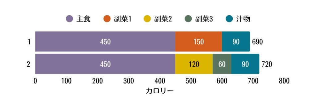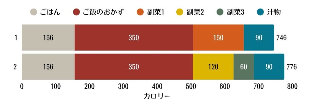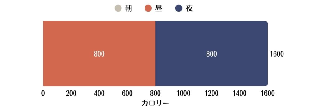 朝の分のカロリーを分けて、昼・夜:800kcalになっています。