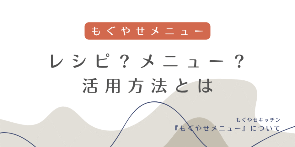 『もぐやせメニュー』の使い方、必要な道具、よく登場する食材についてまとめています。
